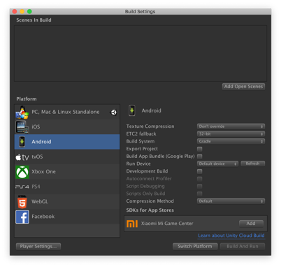 안드로이드로 타겟플랫폼을 변경해주고