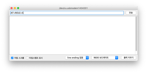 마지막으로 AT+BAUD4 을 입력하여 OK9600이 반환되는 것을 확인합니다.(통신 속도 설정)
