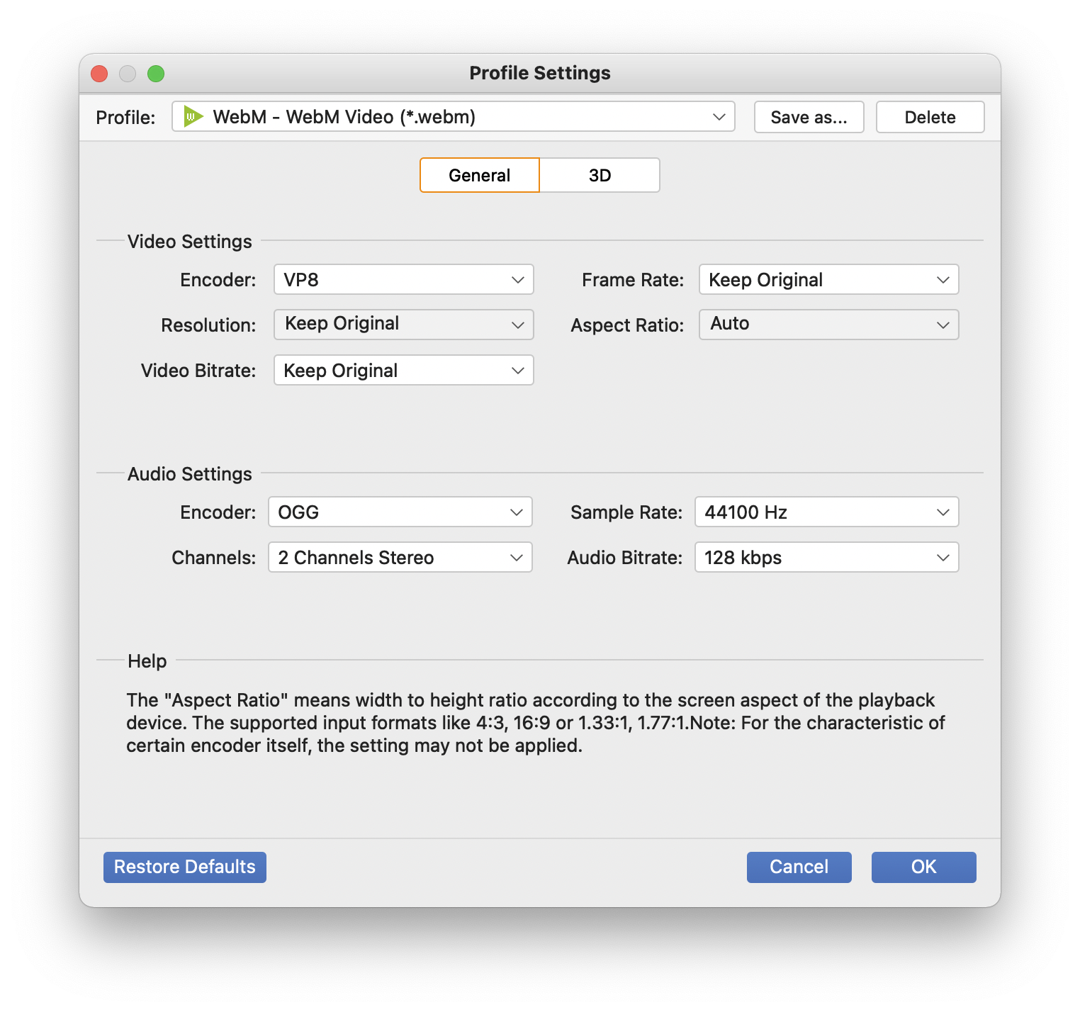종류가 많은데... General Video를 클릭하고 아래로 내리다 보면 WebM이라고 보인다. 맨 아랫쪽에 더 내리면 WebM vp9이라고도 있는데 이걸로 하면 유니티 에디터에서 지원하지 않는다는 에러가 난다. 첫번째로 보이는 WebM으로 선택.